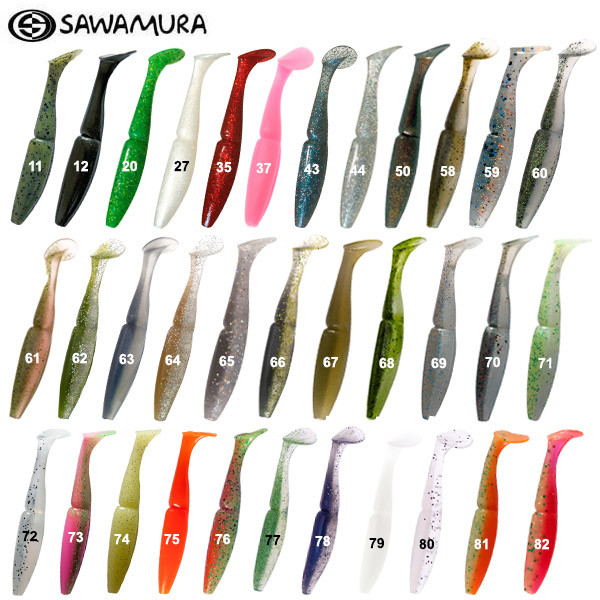 Encore une force du One Up Shad, il est décliné en plusieurs tailles, de 2″ (5cm) à 7″ (17.5) de quoi toucher une multitude de poisson. De plus Ultimate Fishing (le distributeur sawamura en France) le distribue en de nombreux couleurs, plus de trente afin de satisfaire l’ensemble des pêcheurs.