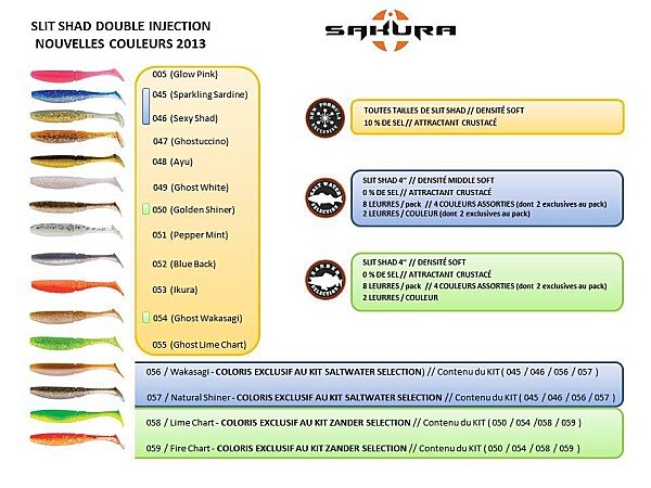 Quelques leurres souples Slit Shad de chez Sakura ICI !